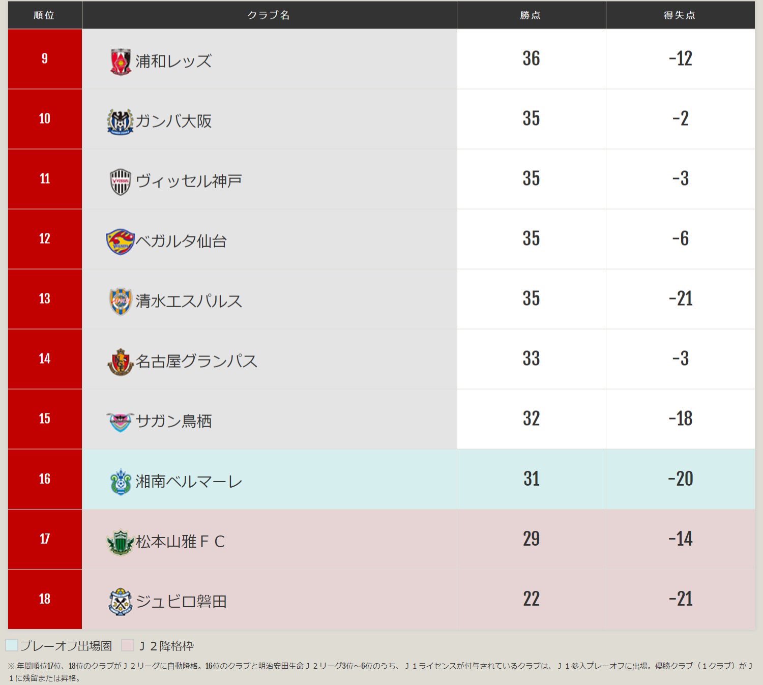 J1リーグ 1stステージ終了時点の順位と残留の可能性 近日出荷 キンジツシュッカ